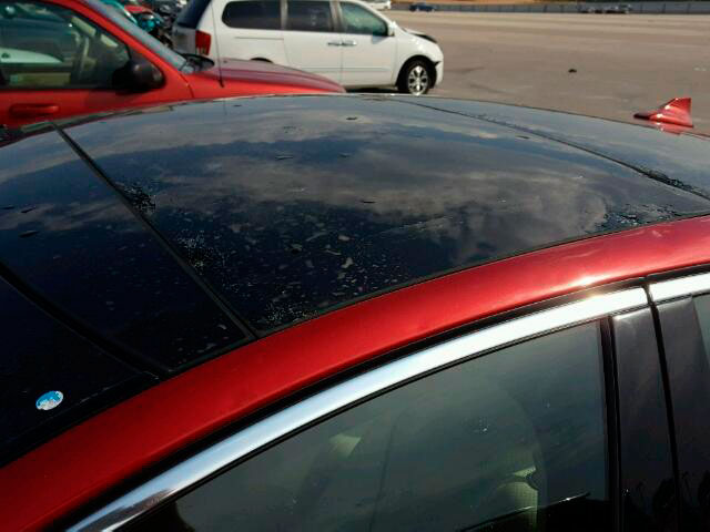 Samochód ma uszkodzony dach w wyniku kontaktu z ciężkim przedmiotem.